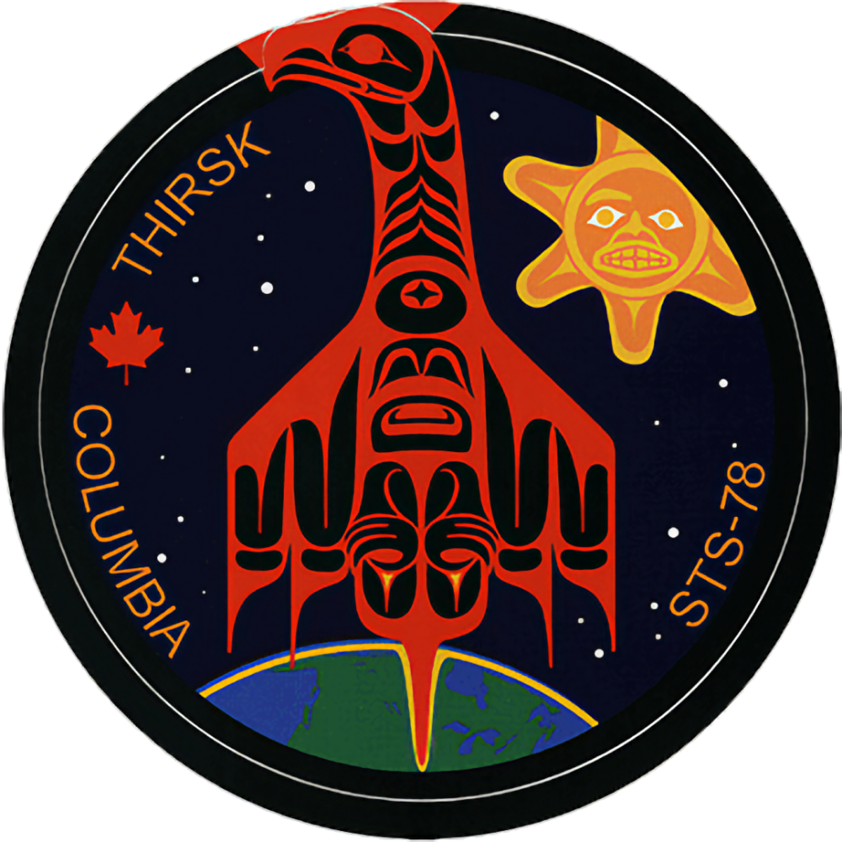 A prime example is Robert Thirsk's patches for his two missions. Thirsk is an admirer of Pacific Northwest Indigenous art and each patch was designed by Tsimshian artist Bill Helin.