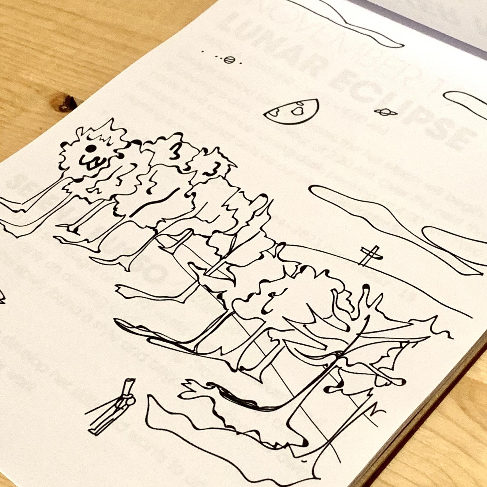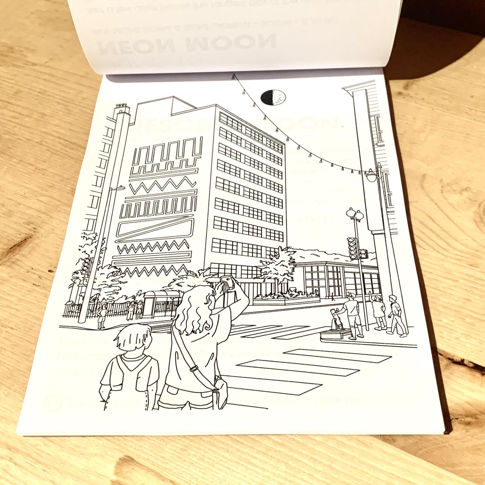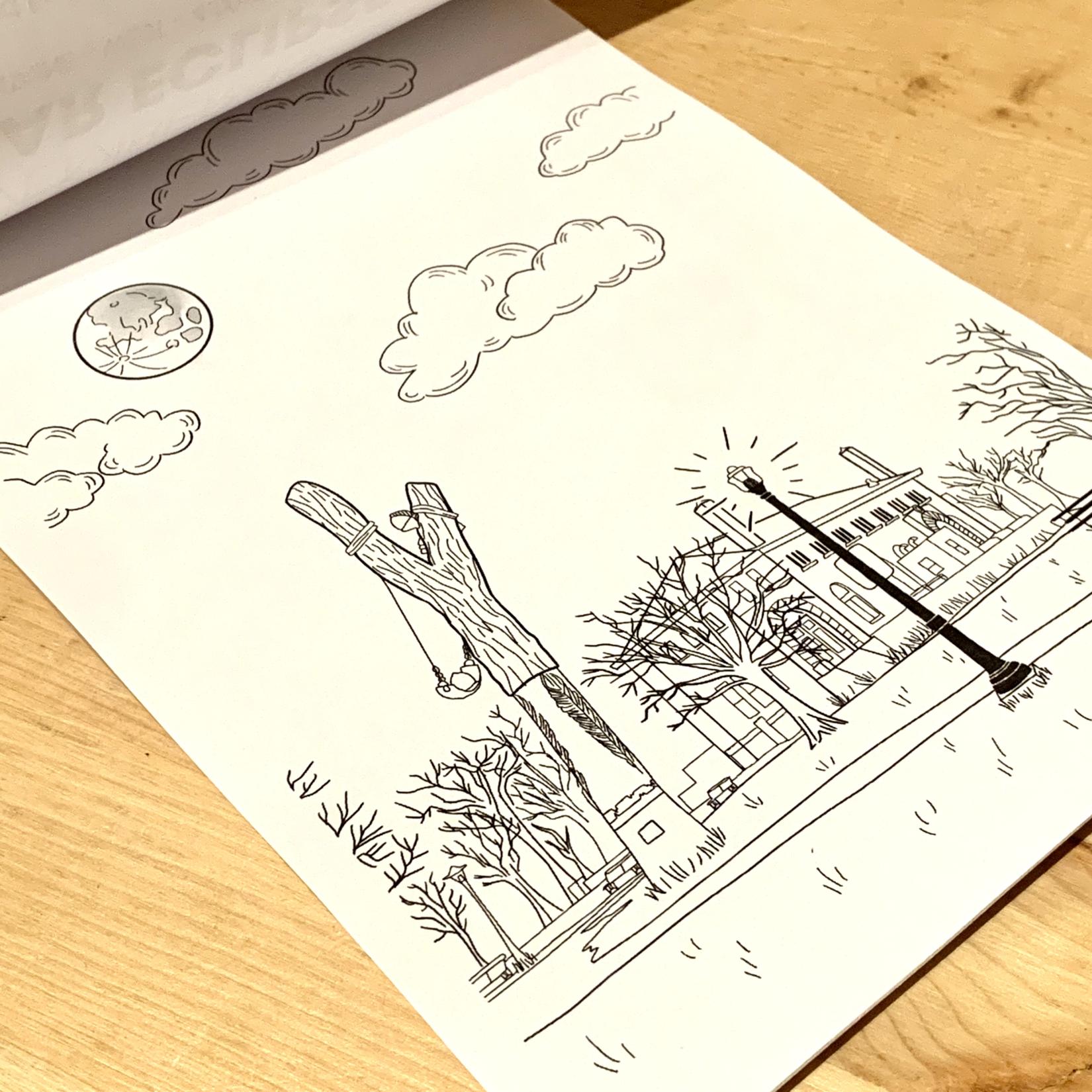 "Future Skies" shows you 10 beautiful moments that will happen through this year. Each artwork is created by a Montréal artist and waits for you to colour them in.