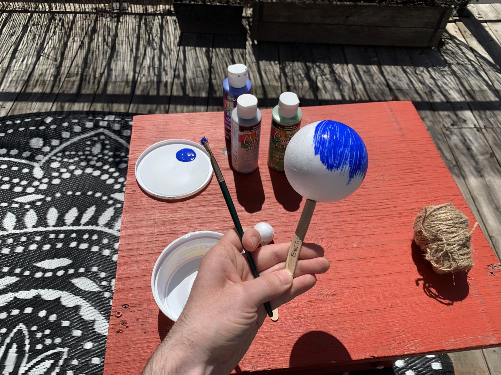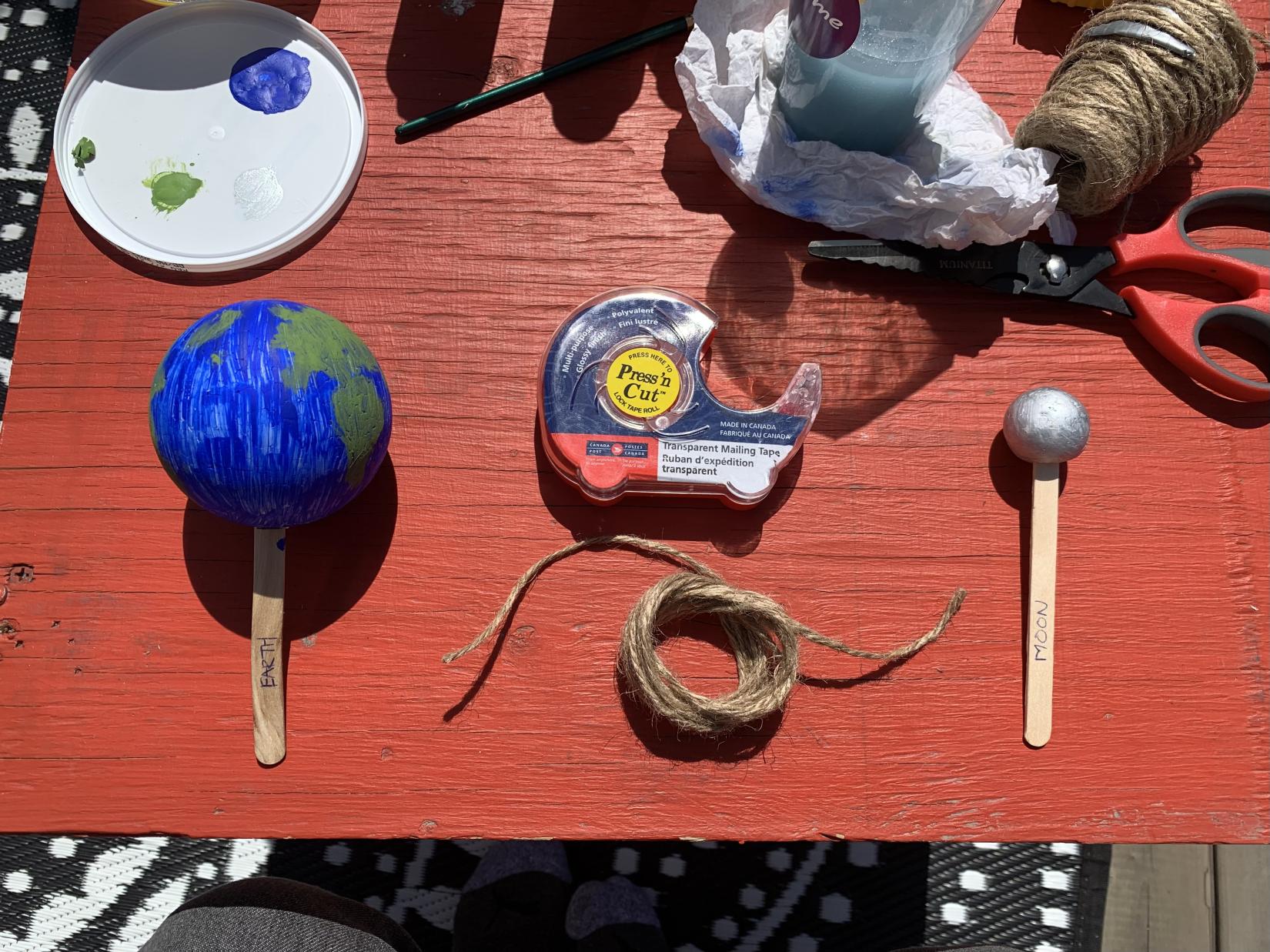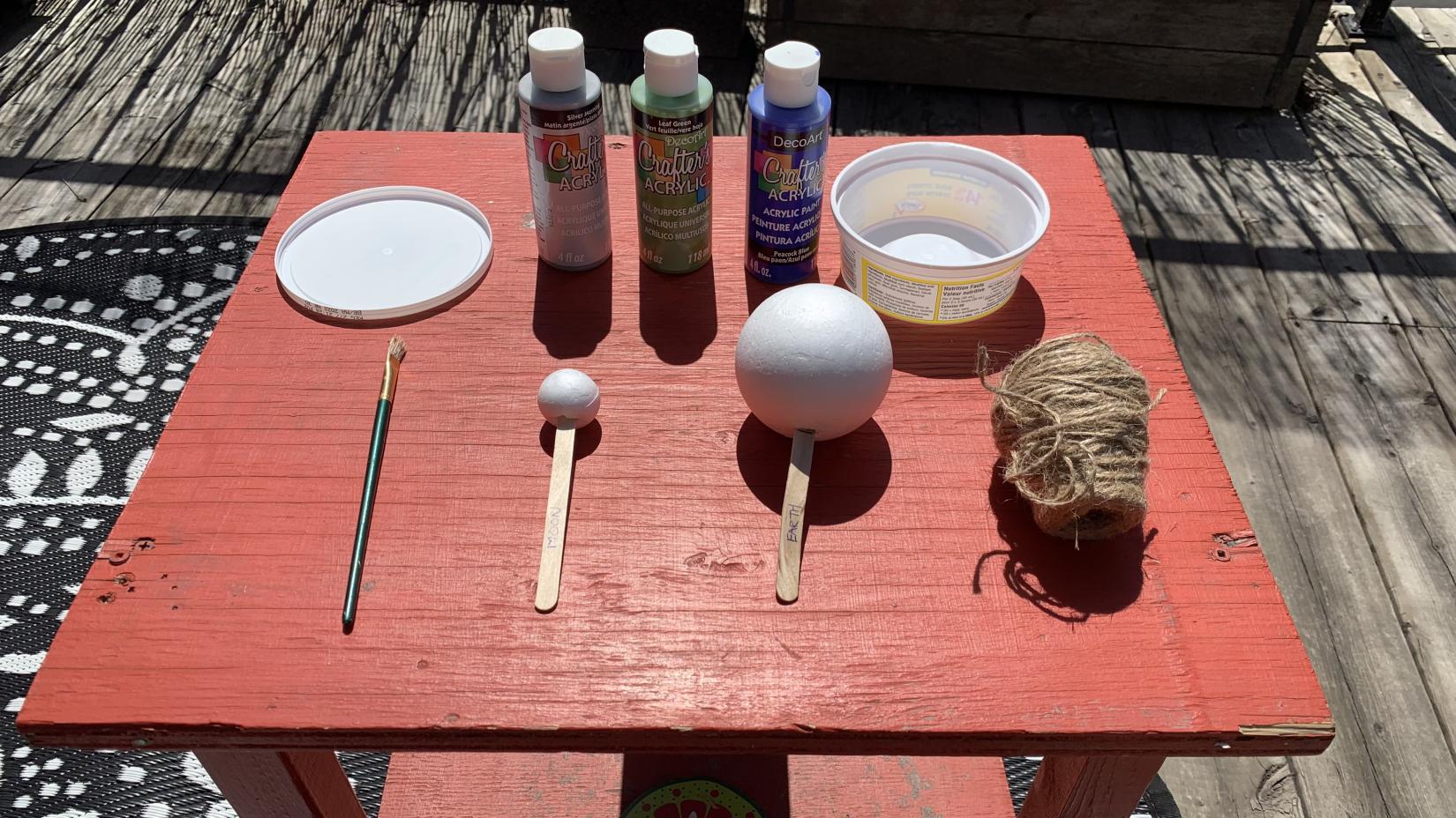 - Materials Provided: styrofoam balls, sticks, string, paint, paintbrushes