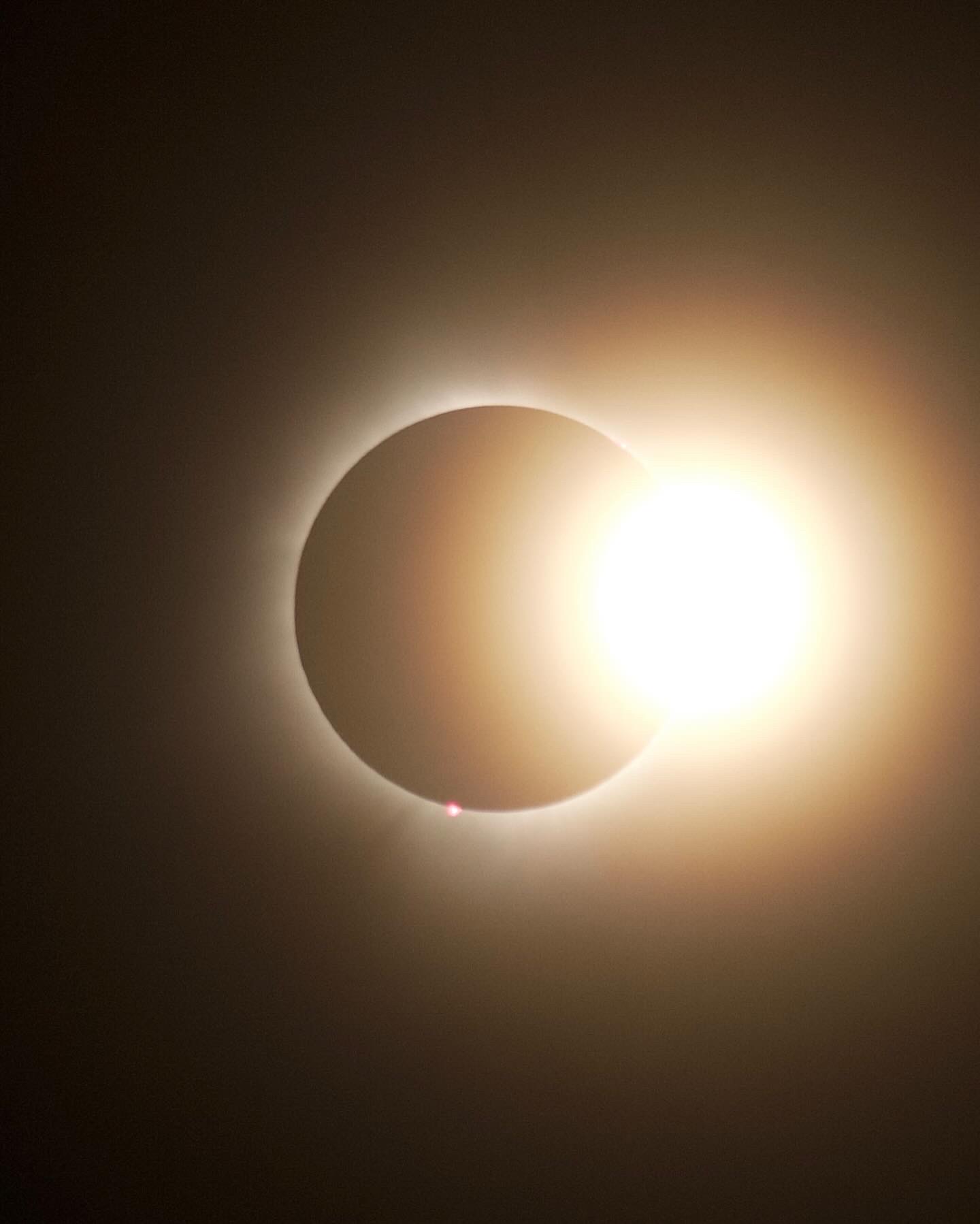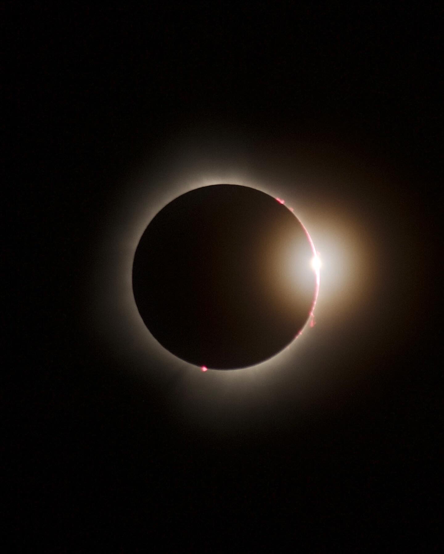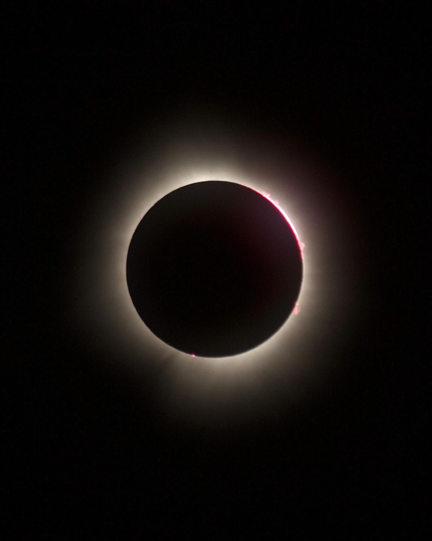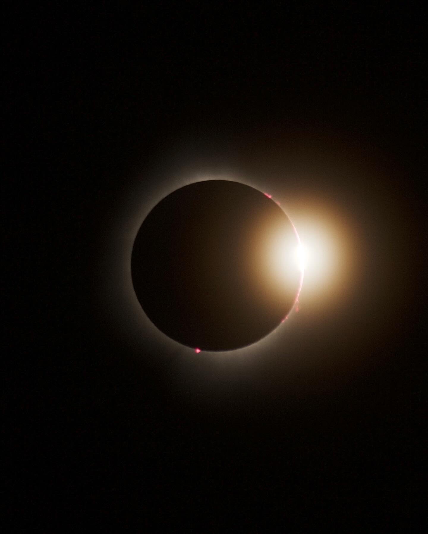Ce lot de quatre tirages métalliques brillants de 5 x 7 pouces montre les derniers instants de la totalité au-dessus de Montréal.