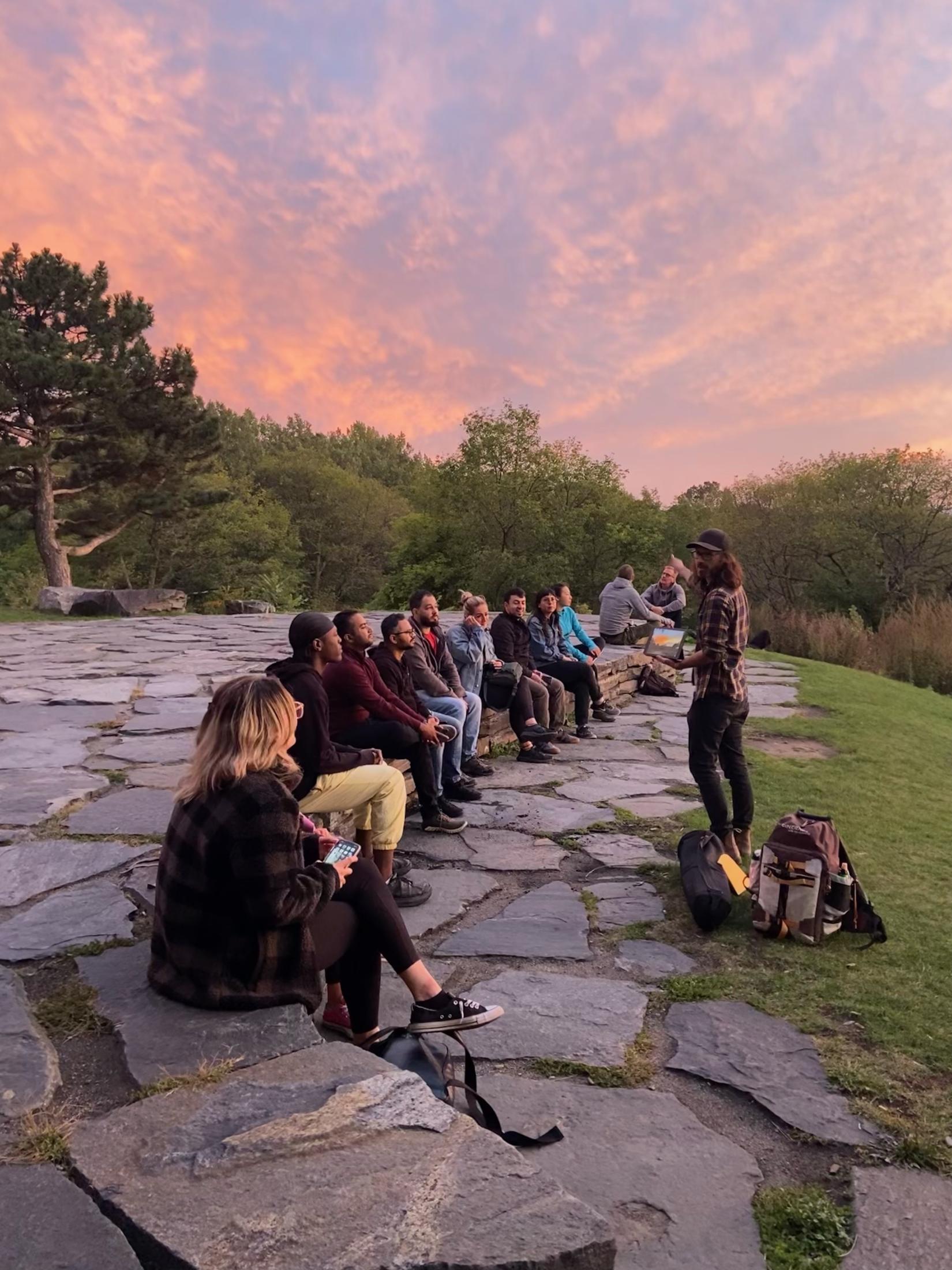 After introductions and setting your groups up, we'll begin hiking up the trails to Belvédère Outremont. We'll arrive before the Sun sets on the horizon.